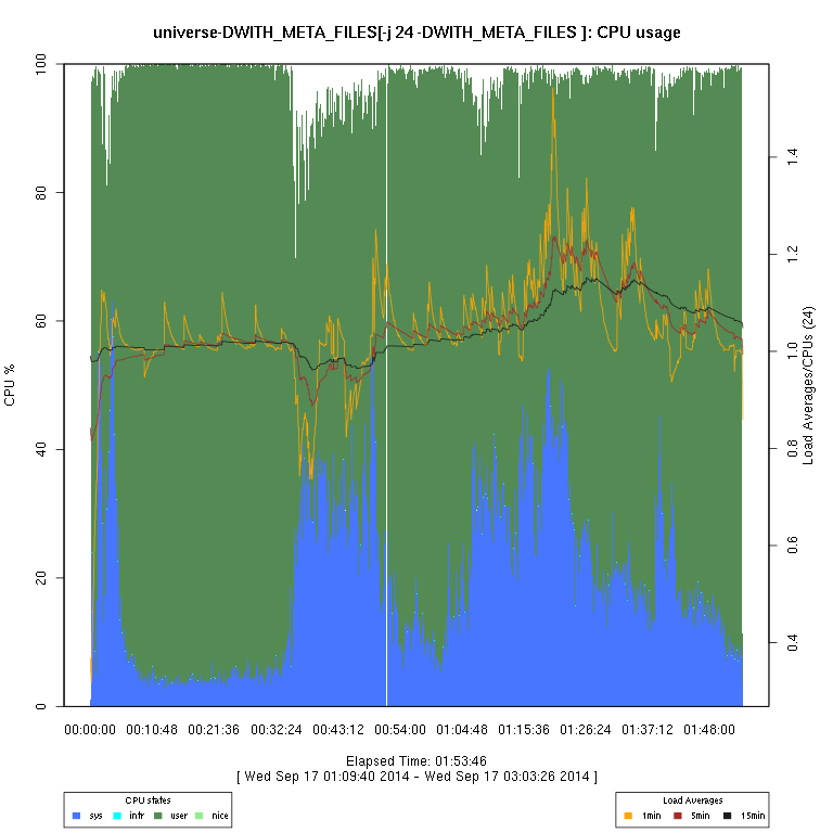 This set of graphs is from a “survey” (just one run of each configuration) of FreeBSD “make -j N ... universe” runs.